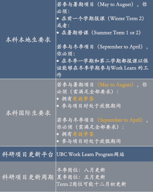 Work Learn Program给UBC的本科生提供了课研项目的申请机会!